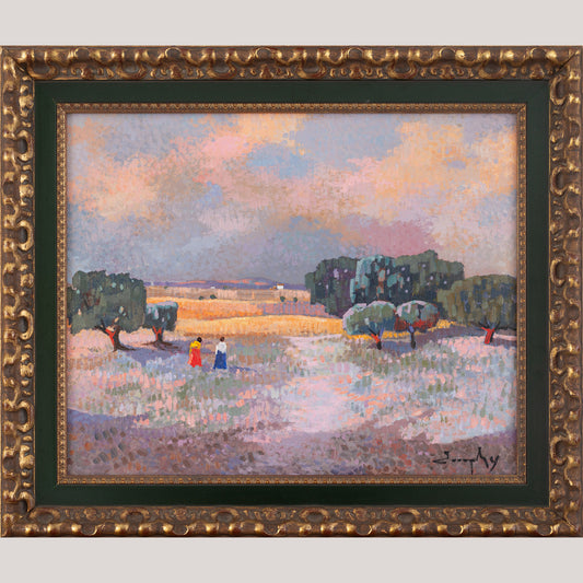 Pointilist Landscape Oil Painting - Twilight Stroll through the Olive Grove