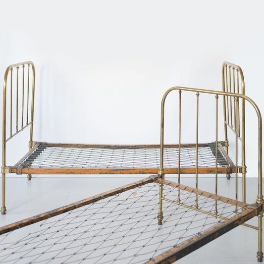 Pair of Antique Edwardian Brass Twin Beds
