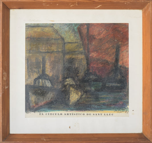 'El Círculo Artístico de Sant Lluc' - Expressive Harbour Scene - Lithograph