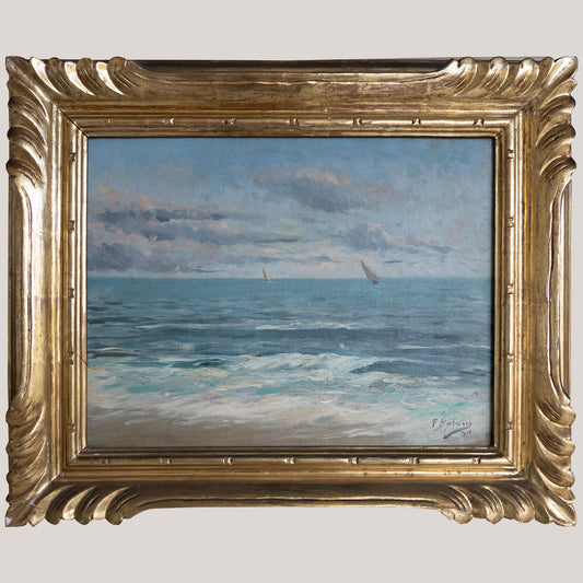 Impressionist Seascape with Sailboats – Oil on Canvas, Signed