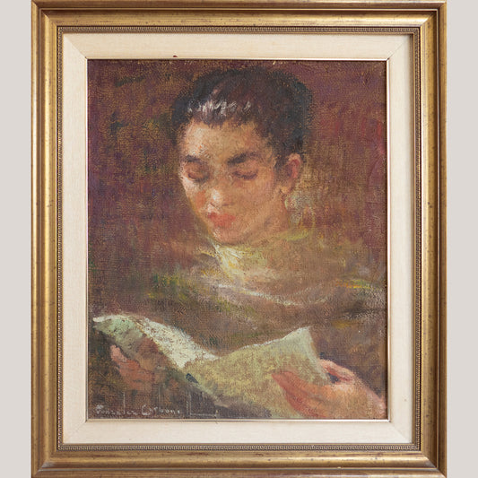 Vintage Portrait of a Choir Girl Reading – Oil Painting by Carbonell González