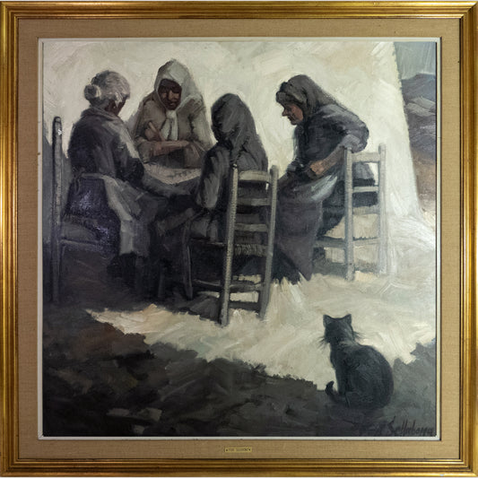 Les Velles de la Nostra Terra – Vintage 1972 Catalan Oil Painting by Font Sellabona