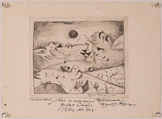 Surreal Lithograph of a Face - Limited Edition Signed Print - Maryan Pinchas BURSTEIN