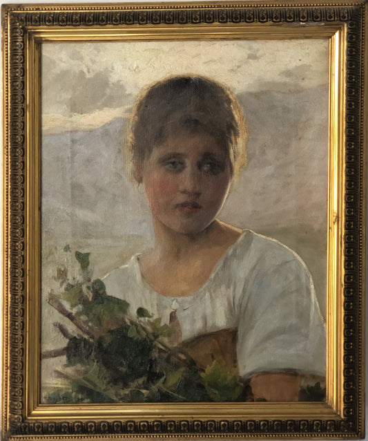 Girl with bouquet of flowers. 1890. Oil on canvas
