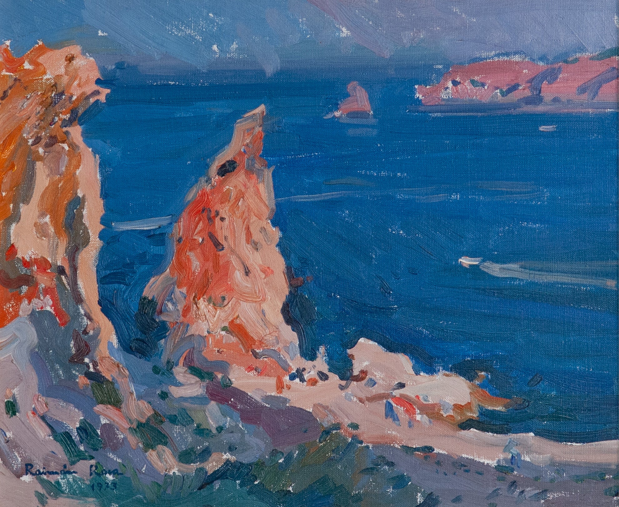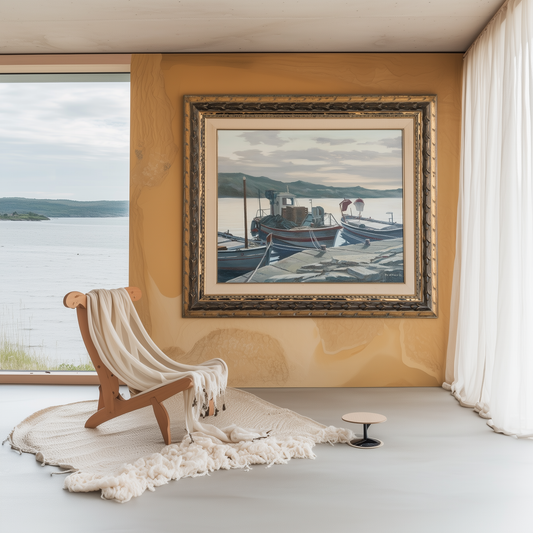Pintura postimpresionista - Barcos de pesca en el puerto, de Josep Munné