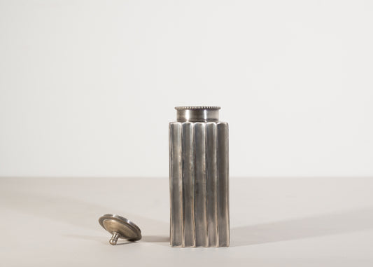 Tarro de almacenamiento acanalado de metal blanco de los años 30 con una artesanía de calidad.