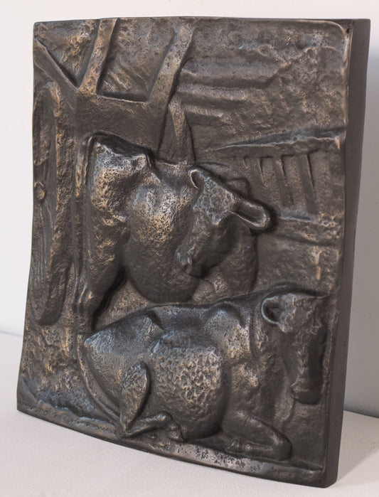 Manuel Martinez Hugué - Plaque de bronze représentant une mère et son enfant