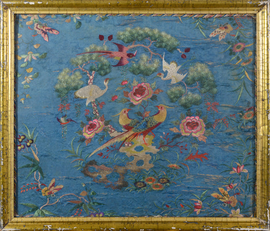 Broderie chinoise - XVIIIe ou début XIXe siècle - Oiseaux et fleurs exotiques