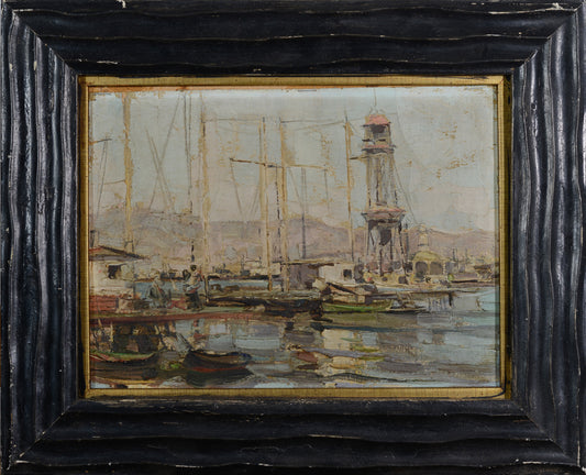 Peinture post-impressionniste - Bateaux de pêche dans le port par Josep Munné