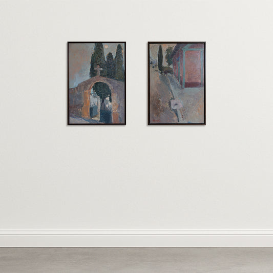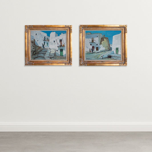 Ibizan Village Scenes – Pair of Original Oil Paintings by Miquel Tort Masgrau
