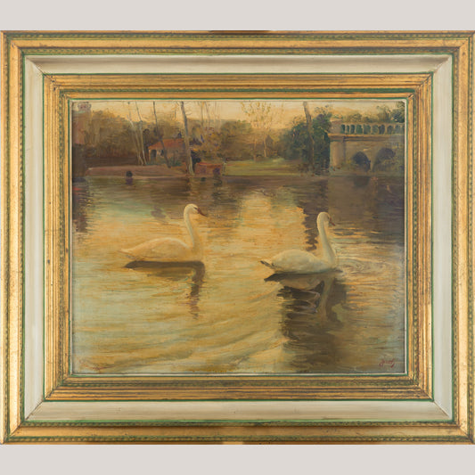 Swans on a Lake - Andrés Justh - Framed Oil on Canvas