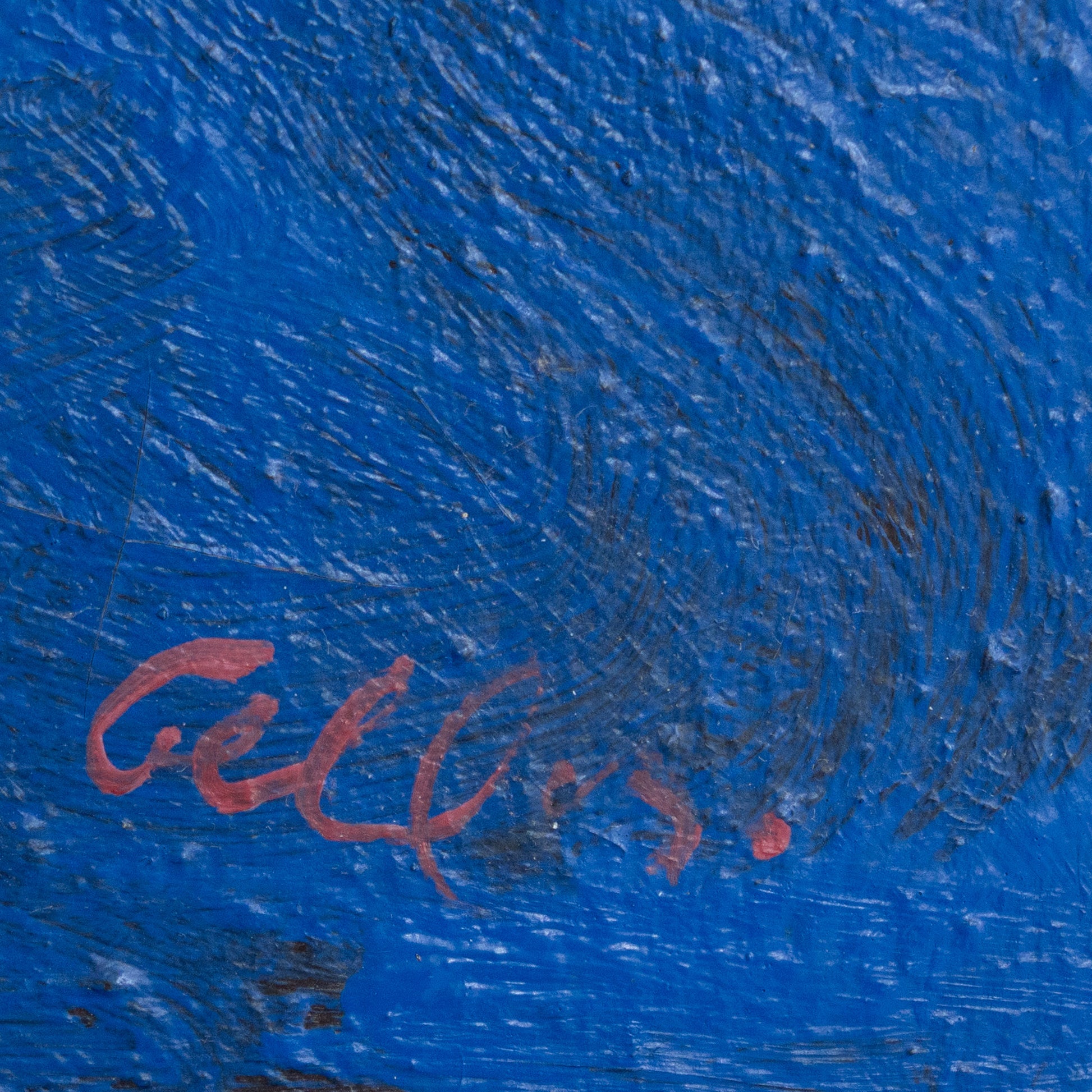 The most evident influences stem from Russian Constructivism, for its focus on structure and rational design; from Dutch Neoplasticism, for its pursuit of balance between form and color; and from Geometric Minimalism, for its visual refinement and exploration of space through modular repetition. A connection can also be seen with technological aesthetics and post-industrial abstraction, where geometry is linked to the ideas of progress, the city, or the machine. Finally, the expressive use of blue recalls the monochromatic poetics of Yves Klein, for whom color served as a means of spiritual and spatial exploration. Overall, the piece belongs to the line of artistic inquiry typical of mid-20th-century abstract art, where geometry becomes a visual language and color a vehicle for contemplation. Possibly Eduardo Paolozzi (1924–2005) Paolozzi-esque techno-futurism than with a literal cityscape or traditional Constructivism.