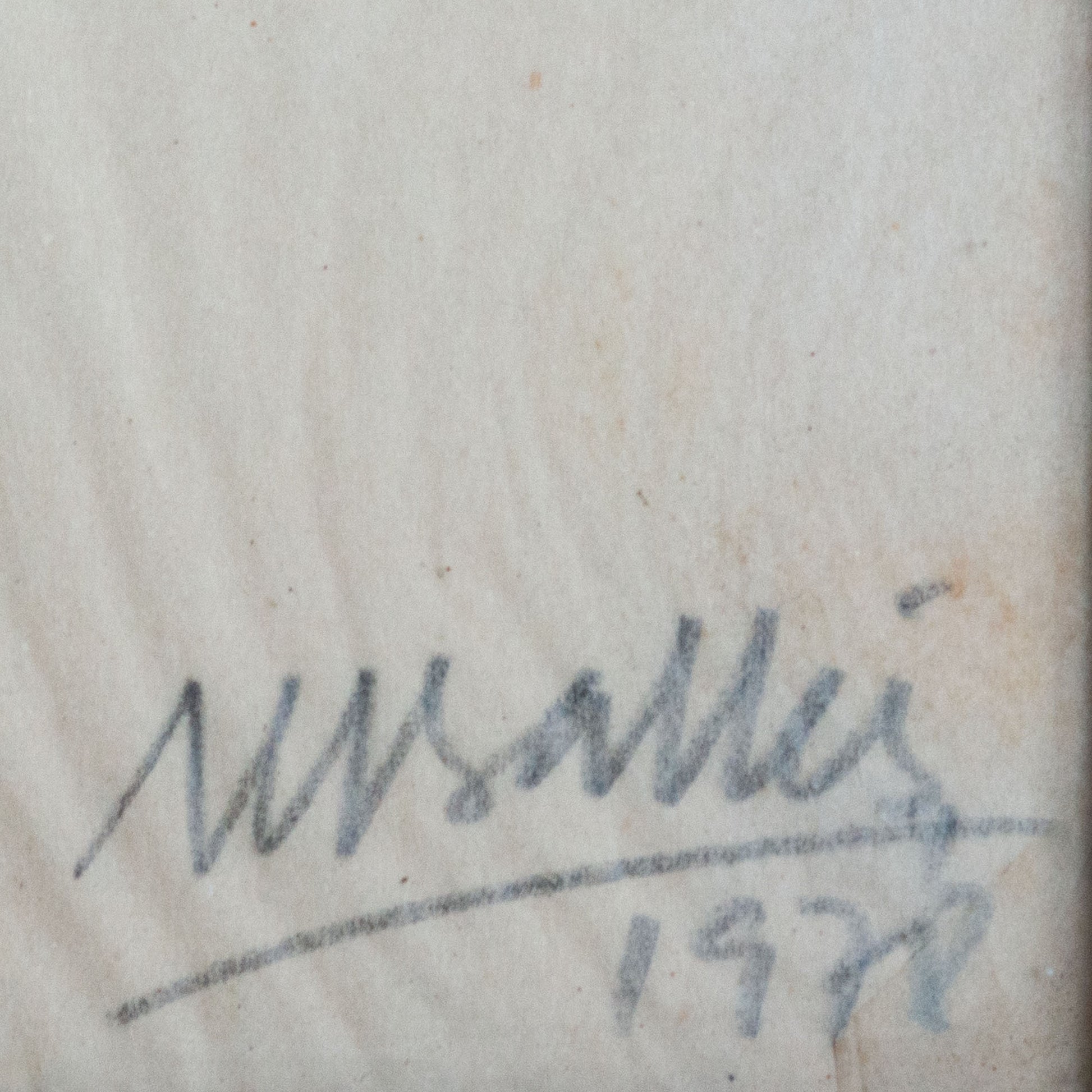 The signature appears to read “Masalles” (possibly “Musalles”), followed by the date. At present, the artist has not been securely identified. The style and approach are consistent with conceptual and graphic-oriented practices of the late 1970s.