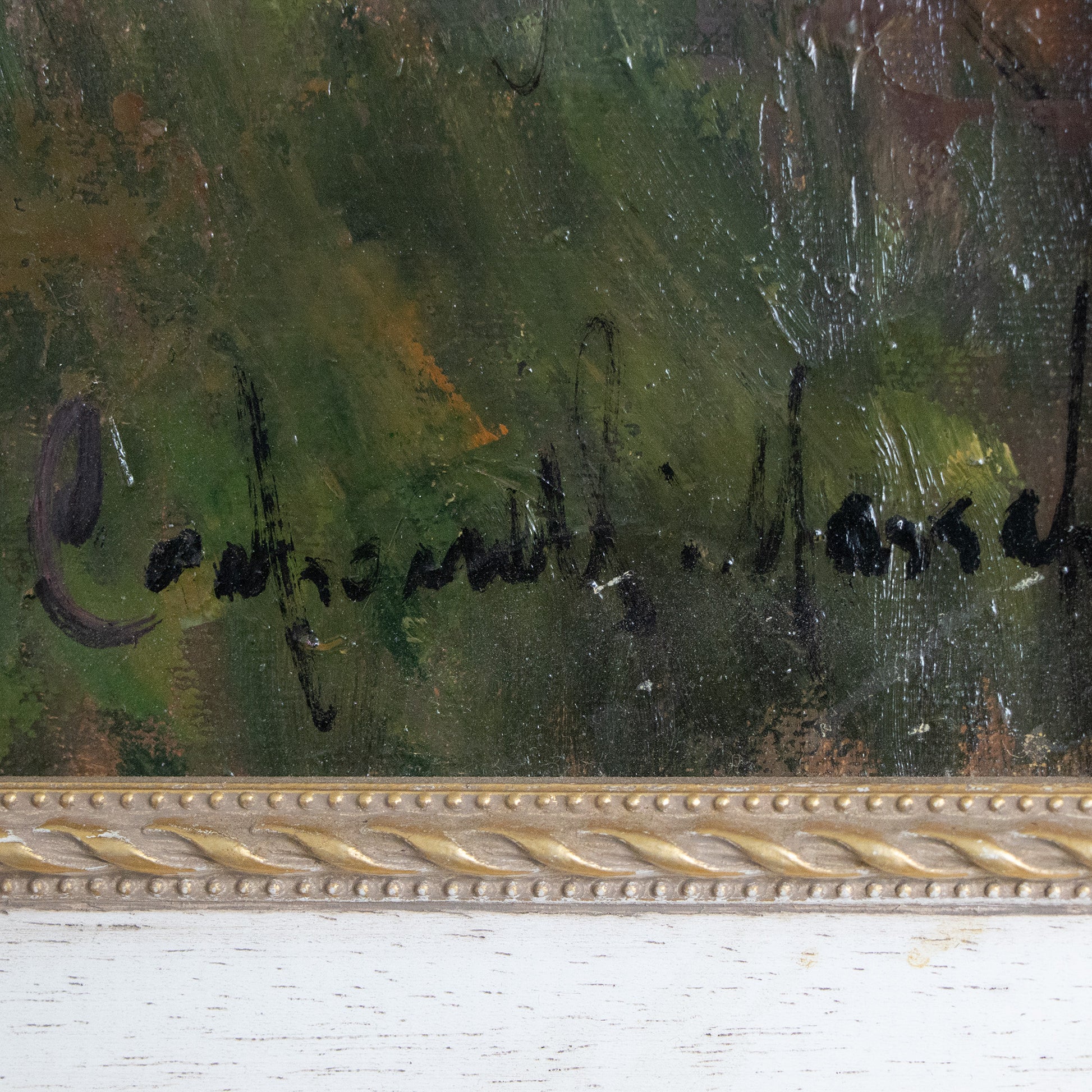 Presented in an ornate carved gilt and cream frame with mild age wear, complementing the painting’s warm tones and period character.