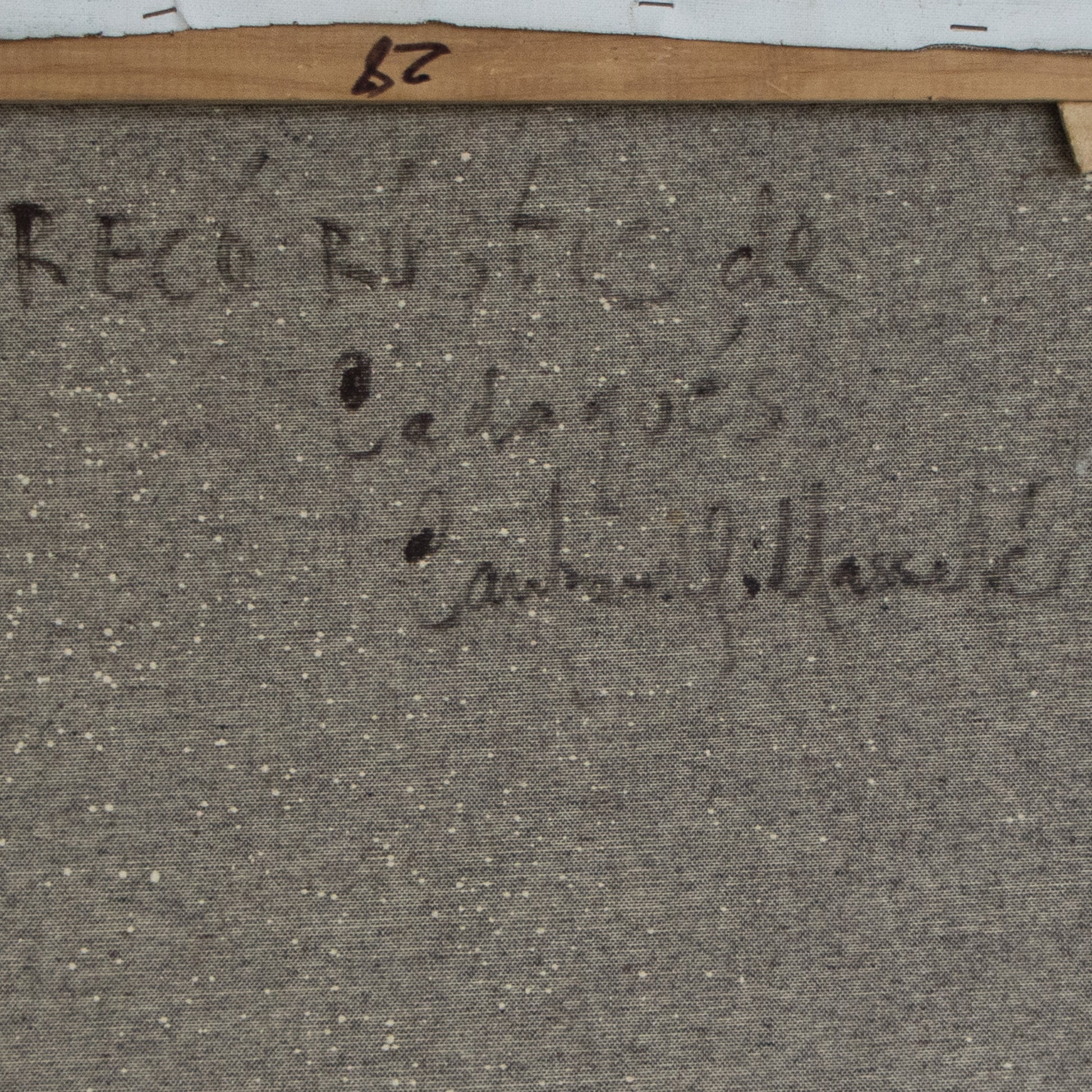 Francisco Carbonell Massabé’s evocative coastal oil painting captures a tranquil rustic scene at Calañós, where sunlight glances across whitewashed fishermen’s houses and weathered boats drawn ashore. The artist’s balanced composition guides the eye from the textured stone walls to the sparkling blue sea beyond, creating a serene dialogue between architecture and nature. Carbonell Massabé’s expressive yet controlled brushwork imbues the canvas with Mediterranean warmth, while his nuanced handling of light and shadow reveals a mastery of tonal harmony. The earthy ochres and soft blues combine with subtle impasto to suggest the tactile reality of place and moment. This painting’s calm atmosphere and timeless coastal subject make it a refined statement piece for elegant interiors that value authenticity and craftsmanship.