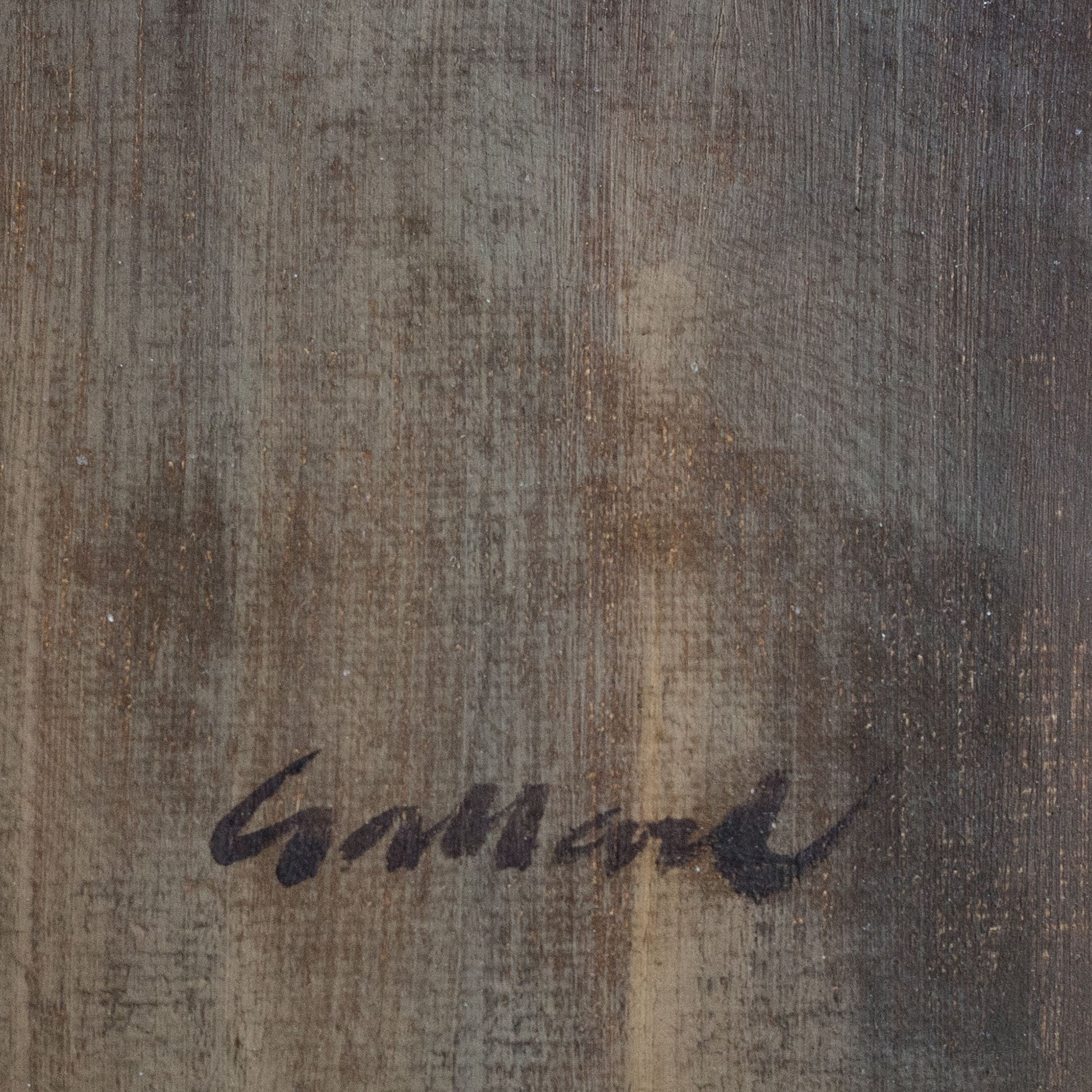 The signature present on the painting has not yet been conclusively identified. The work demonstrates a contemporary realist technique, characterized by careful draftsmanship, soft tonal transitions, and a focus on contemplative figurative subject matter.