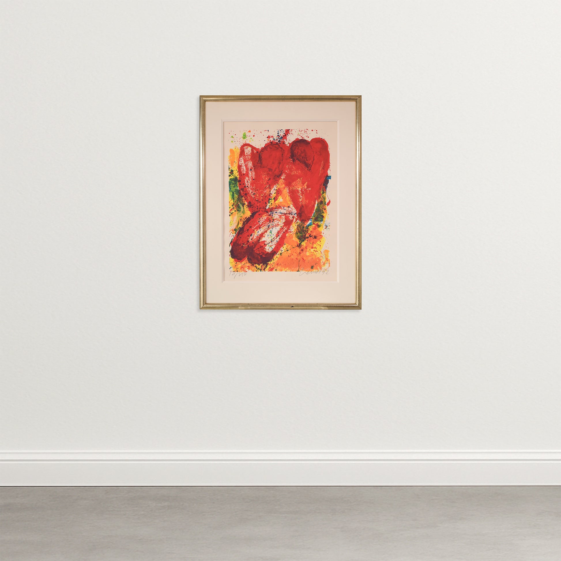Titled 'Three Tulips Nr.II' by the artist, this explosive piece uses dynamic brush strokes and splattered paint to express volatility and passion, creating this limited edition silkscreen. The tulip is a symbol for deep, unconditional love, and Cremer ingeniously draws intensity and emotion from these delicate flowers.