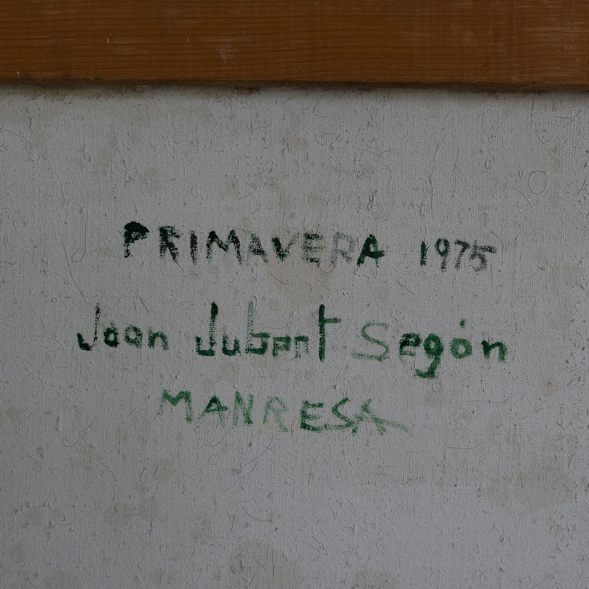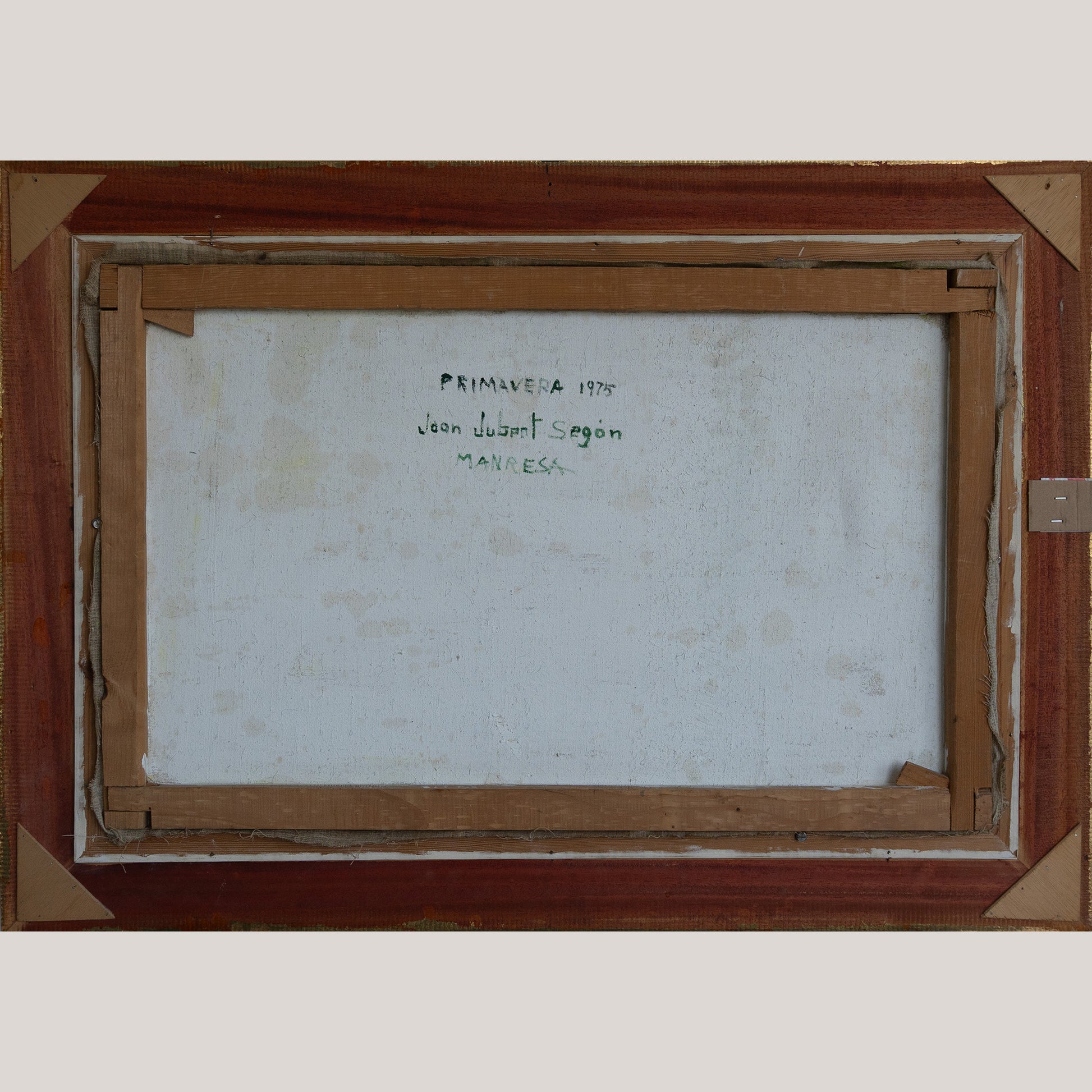 Presented in a molded and gilded wood and stucco frame in very good condition, showing minor age wear. The reverse bears the inscription “Primavera 1975 – Joan Jubert Segon – Manresa.”