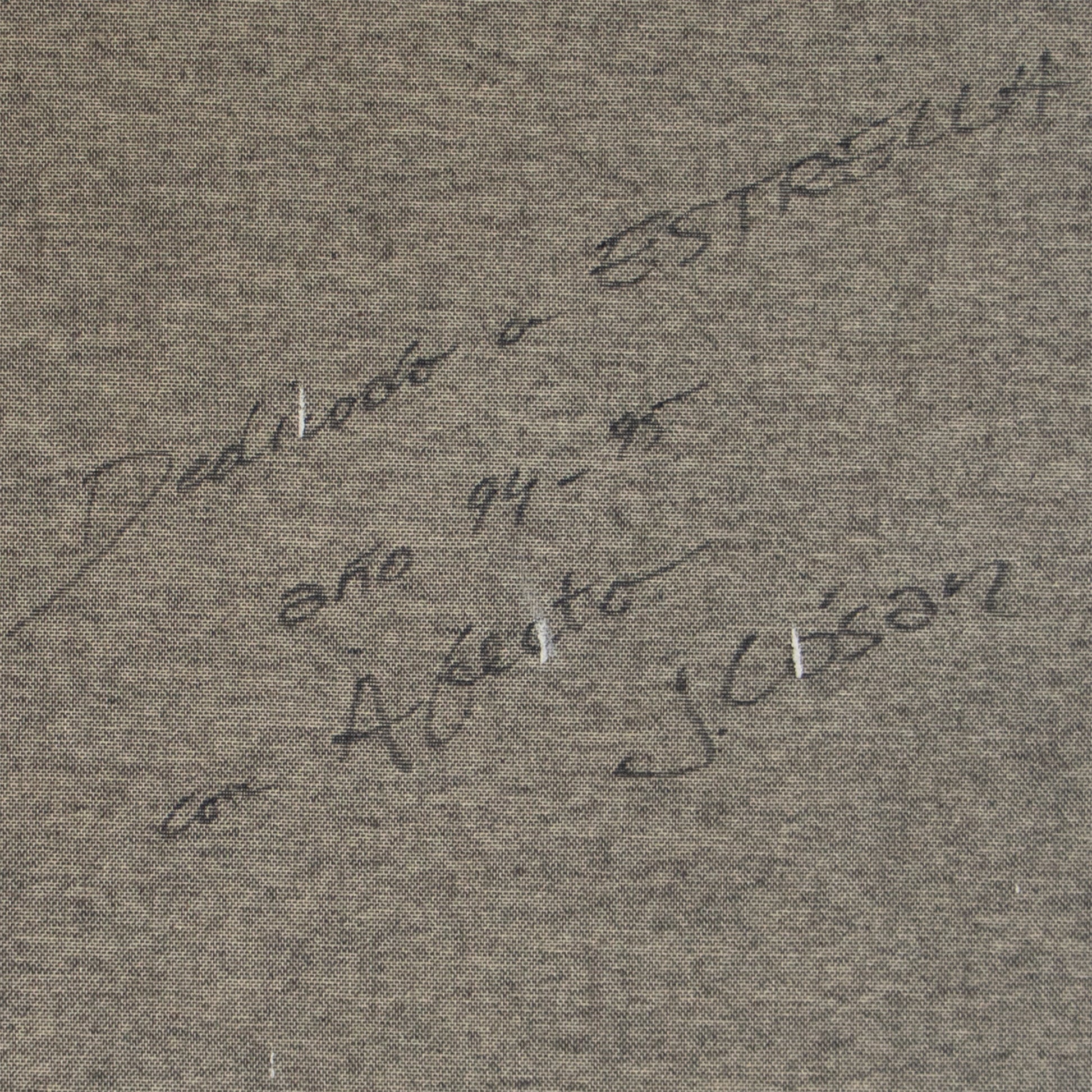 Frame in molded and gilded wood, with slight flaws and damage. Signed. On the back, signed, dated between 1994 and 1995, and dedicated.