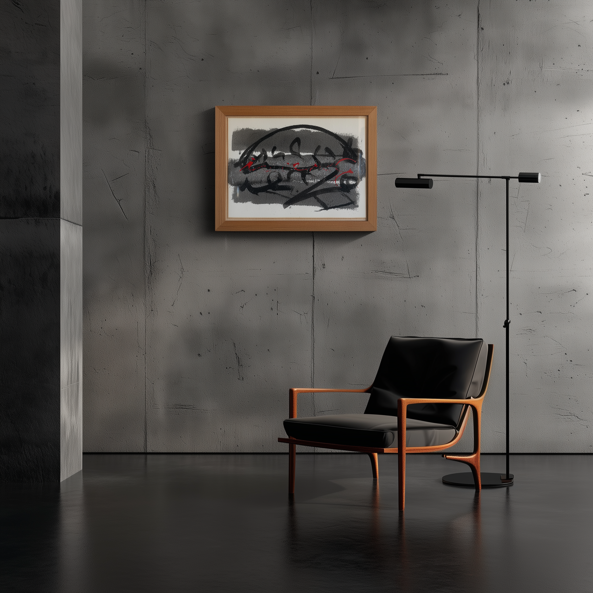 Created by Josep Güell in 1987 using mixed media on paper, this expressive abstract composition resonates with quiet intensity and layered emotion. Swathes of dark grey and black dominate the surface, forming a textured field where calligraphic strokes in white and urgent flashes of red create a sense of movement and hidden meaning. The rhythmic marks and arcing forms evoke a language both visual and poetic, while the delicate overlay of handwritten elements suggests a conversation between presence and absence. Güell’s refined sense of balance—between density and emptiness, gesture and silence—places the work within the lineage of lyrical abstraction and metaphysical expression. The palette is restrained yet commanding, offering an atmosphere of contemplative depth. This visually arresting piece carries emotional gravity and invites extended looking, adding a profound narrative undercurrent to modern environments.