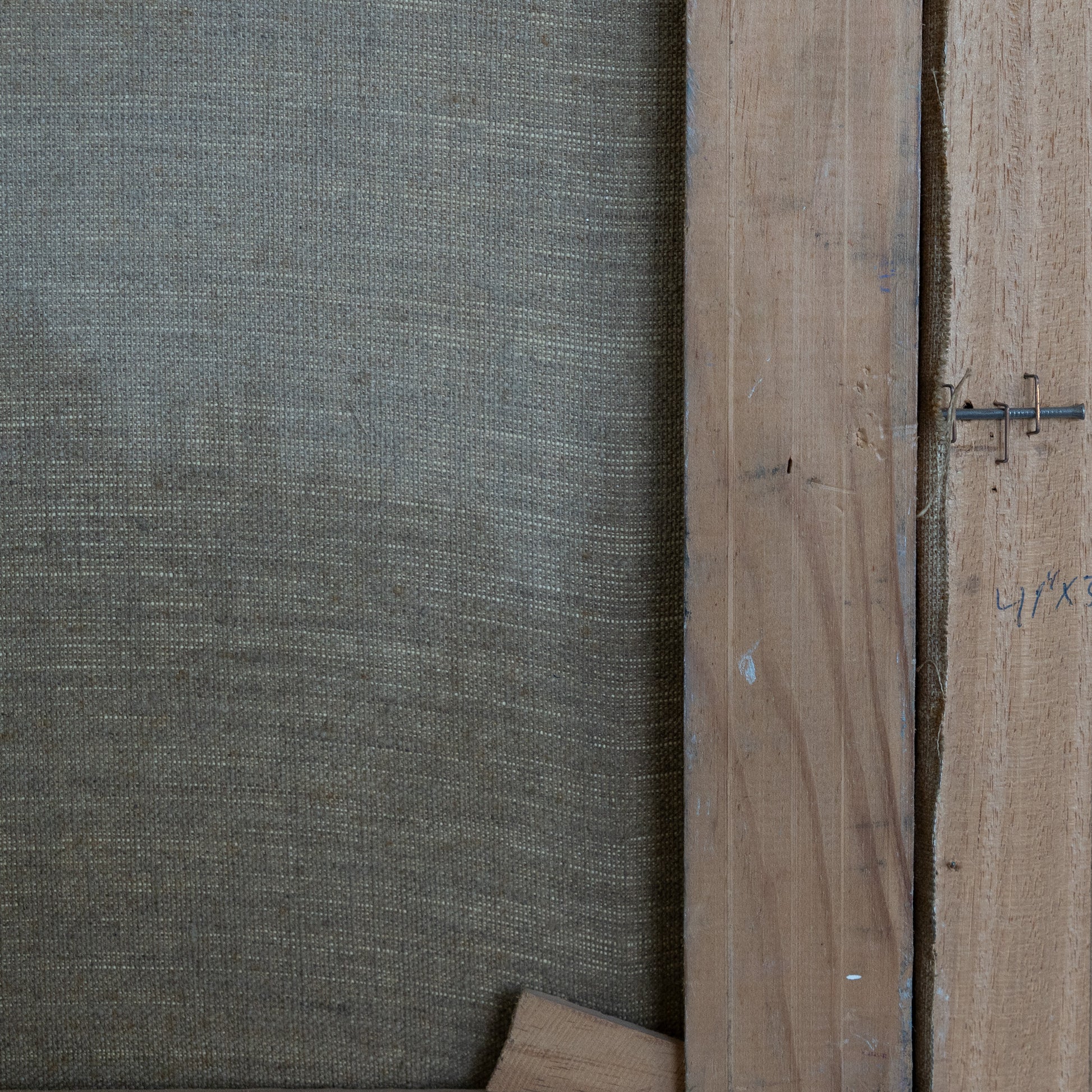 Good. Molded wood and stucco frame with a silver-toned patina, showing minor flaws and signs of wear.