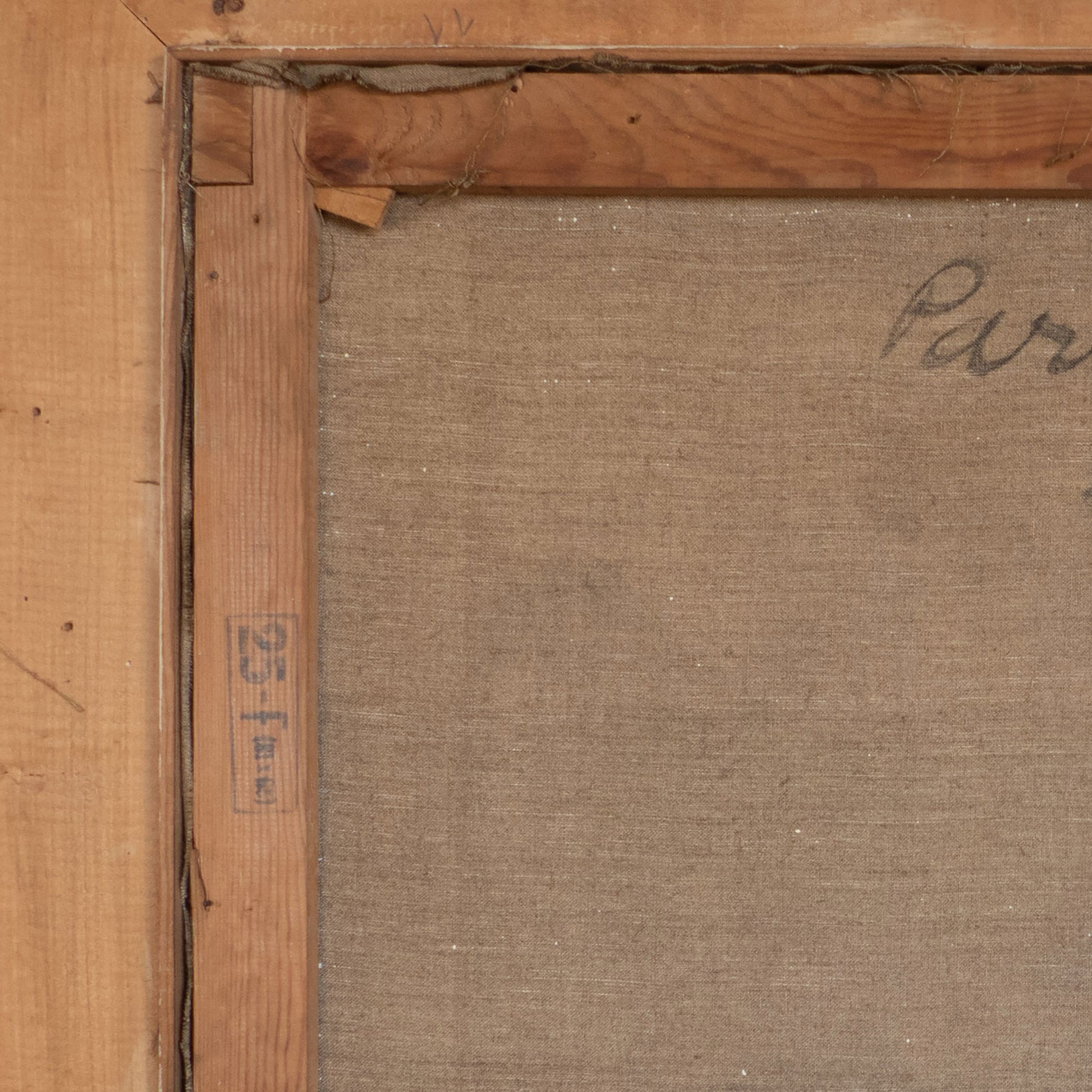 This refined view of the Seine, labelled “E.G. Benito,” captures the tranquil harmony of Paris bathed in soft afternoon light. The domed silhouette of the Institut de France rises above the calm river, its reflection merging gently with the water’s muted greens and blues. The artist’s controlled brushwork and subtle gradations of tone suggest a painter deeply attuned to atmosphere and proportion, evoking the serenity of the city’s riverbanks. A delicate play of light across architecture and sky conveys a sense of stillness, reminiscent of early 20th-century impressionist studies of urban landscapes. The handwritten inscription on the reverse, “Paris, La Seine et l’Institut,” confirms the subject, adding historical and geographical context to this sophisticated Parisian scene.