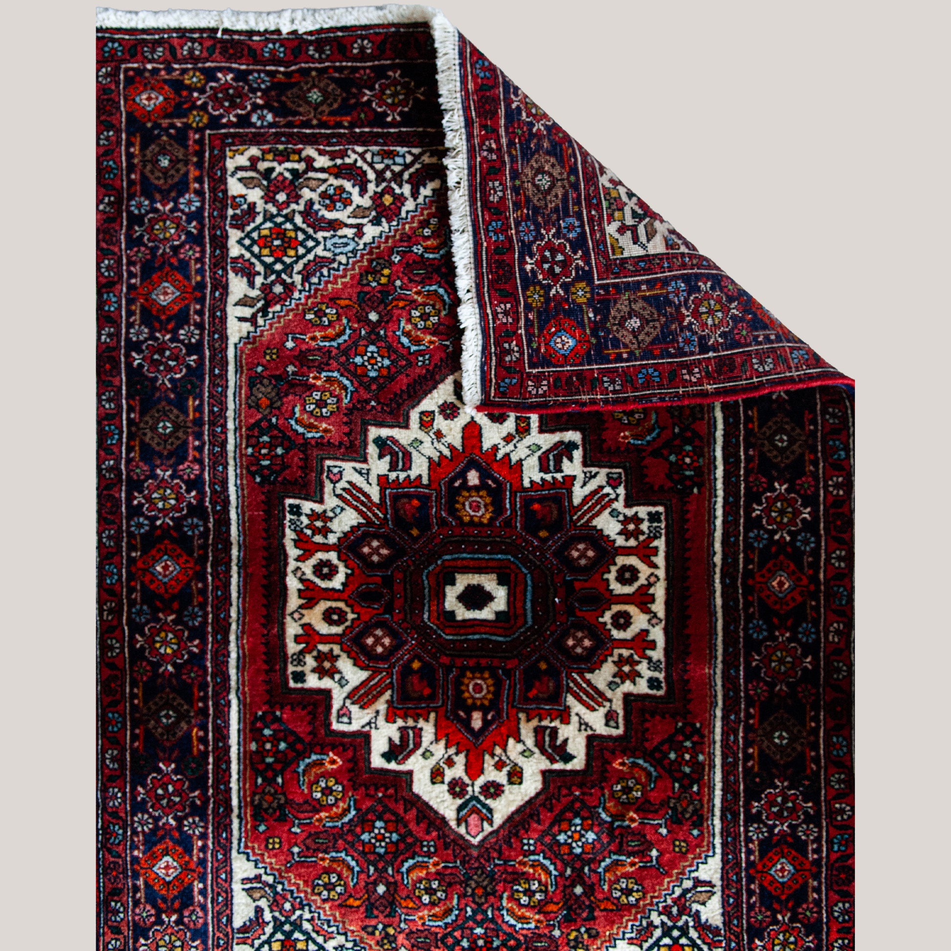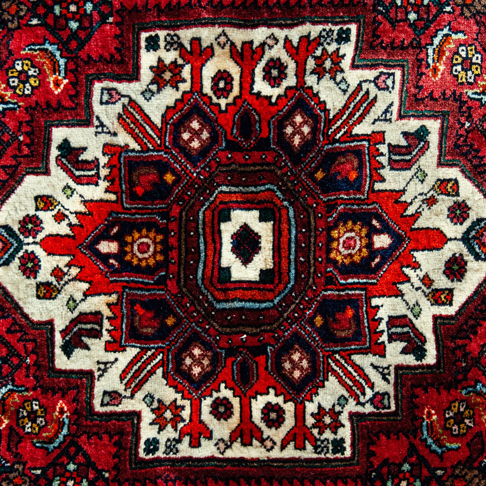 Heriz rugs are produced in and around the town of Heriz in East Azerbaijan Province, near Tabriz. They are renowned for their robust construction, geometric abstraction, and long-lasting wool quality, attributed to copper-rich local spring water. These rugs are often sought after for their graphic patterns and structural strength, making them both decorative and practical heirloom pieces.