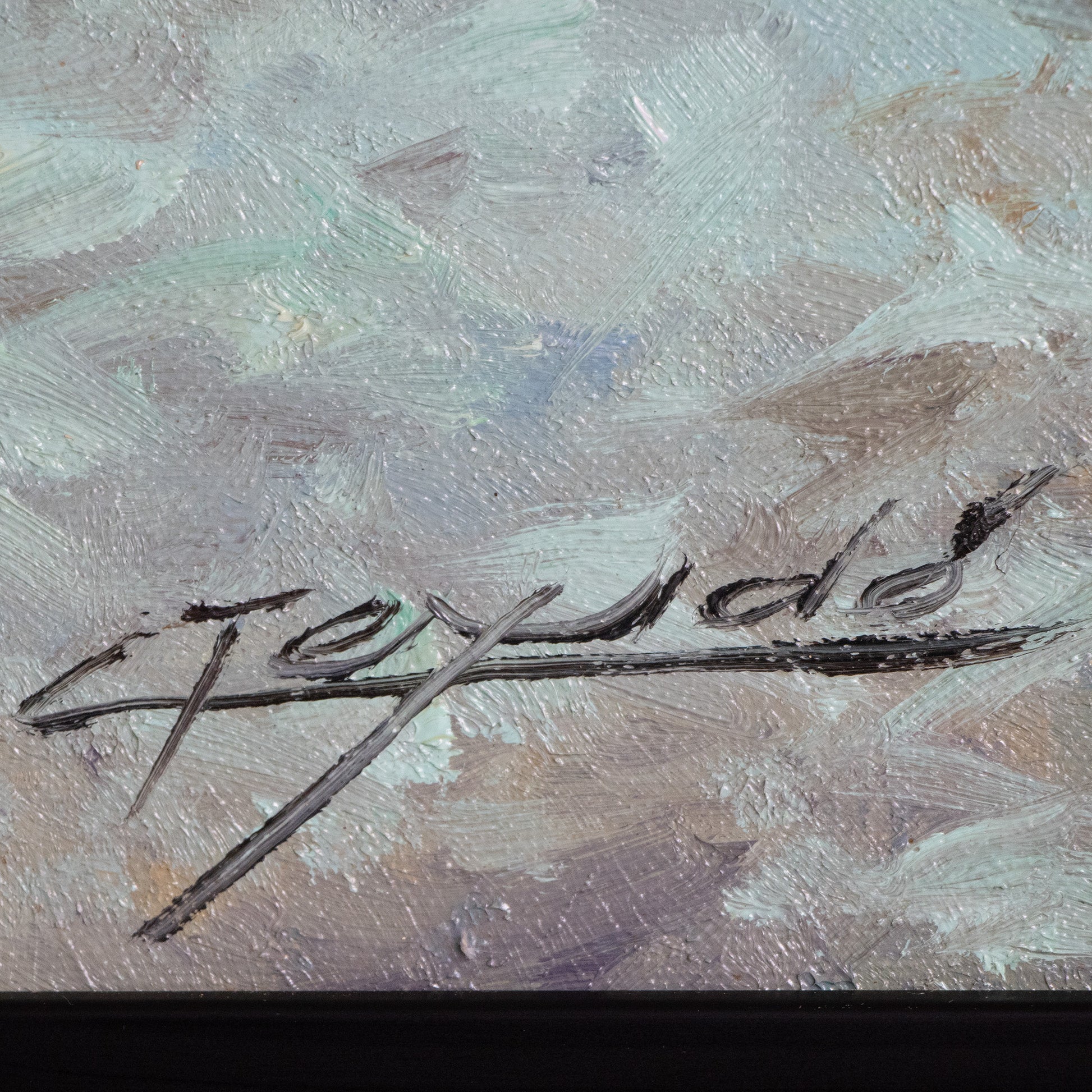 Though the painter’s full identity is unconfirmed, the style aligns with late 20th-century Mediterranean realism. The confident impasto and attention to reflected light suggest influence from Catalan and Valencian coastal schools, where painters emphasized atmosphere, color harmony, and the natural luminosity of sea and sky.
